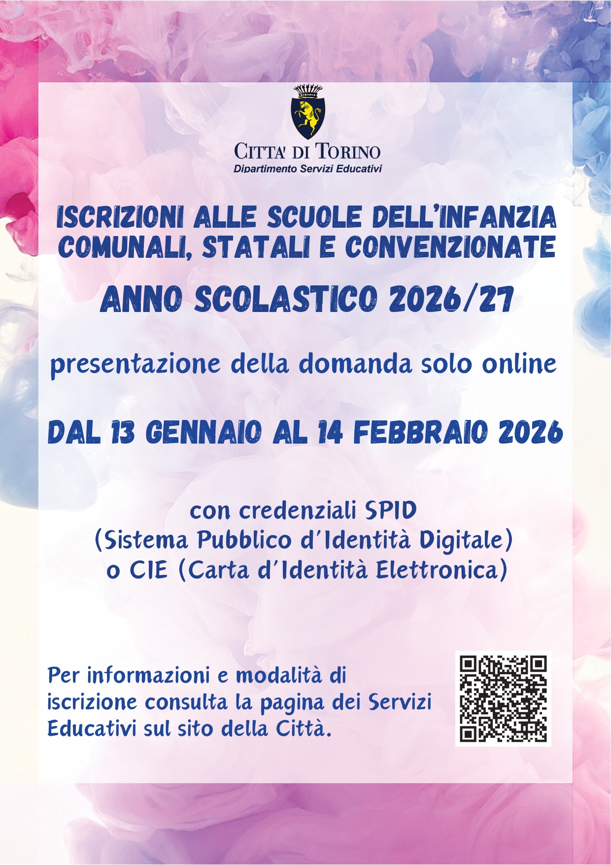 Si informa che il periodo per le iscrizioni alle scuole dell’infanzia del Comune di Torino per l’ a.s. 2026/27 sarà: